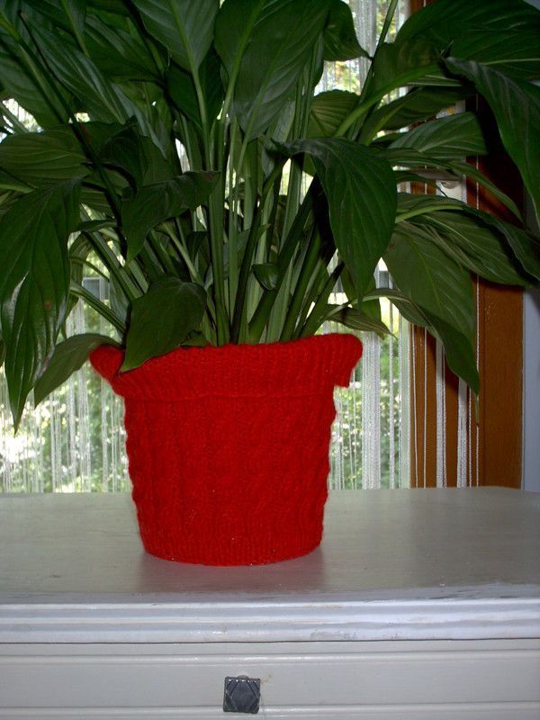 peinture plante caché pot torsade aiguille tricot fleur fleurs rouge réinterprétation
